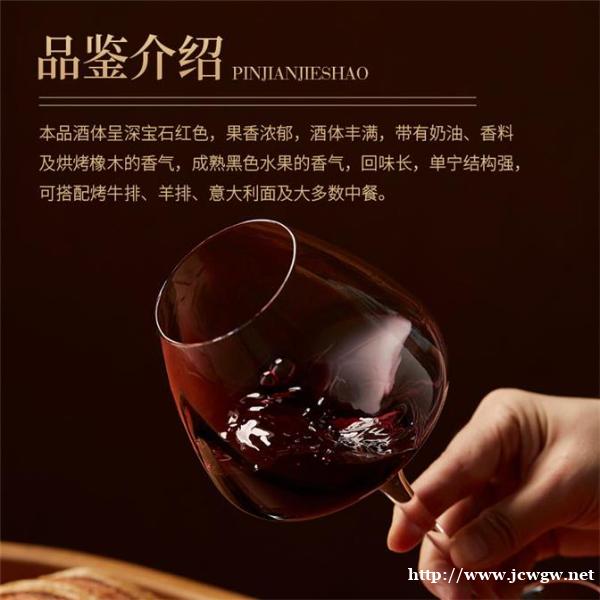 人工原生态种植,不打农药,不施化肥,控温发酵,酒体呈深宝石红色,果香浓郁,带有奶油、香料及烘烤橡木香强劲,回味悠长,适合搭配牛排、羊排及中餐。